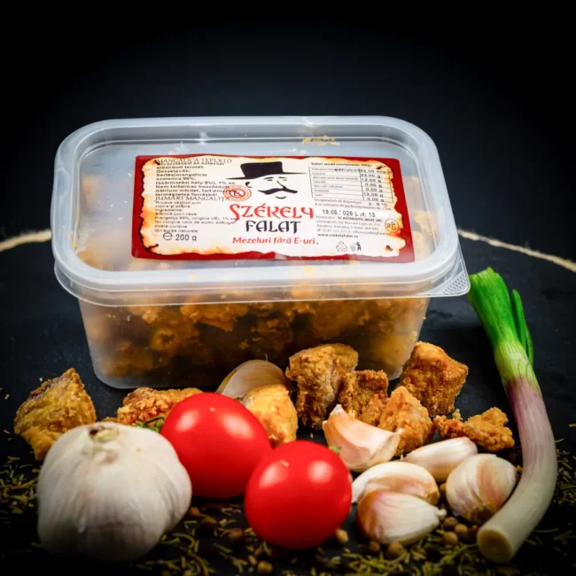 Mangalitsa pork lard, salt. Product obtained by melting and roasting.