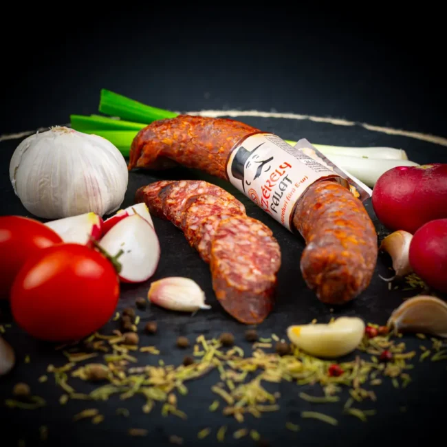 Carne mistreț 51%, carne porc 29%, carne vită 15%, slănină 5%, sare, condimente naturale. Produs crud afumat. Membrană naturală.