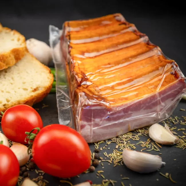 98% sertés szalonna, só, természetes fűszerek. Főtt, füstölt termék.